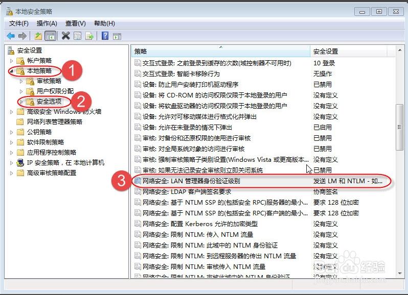 第二台电脑更奇葩,特么网卡坏了,这么多年了,还真少见网卡用坏的。不是物理损坏,灯还亮,在网卡界面也显示正常,就想右下角显示×。本想买个pci网卡,但公司没采购计划,光买这一个也不好弄,就换个机器。结果两个机器都不识别硬盘,可能机器有问题。找个好点机器正常安装系统,进系统后又无法进入共享,怎么输入密码都提示错误,可我没输错啊,我都要怀疑人生了。最终还是百度大法好:提示“登陆失败:未知的用户名或密码错误”,重启电脑或在共享电脑上新增一个管理员级用户还是登录不上,试着用XP系统的电脑来登录,可以正常登录。排除网络及登录用户名和密码的问题,问题出在WIN7系统的本地安全策略设置上,把网络安全:LAN管理器身份验证级别从“没有定义”更改为“发送 LM 和 NTLM – 如果已协商,则使用 NTLMv2 会话安全:”即可 。问题是我两台电脑用的同一个镜像同一个u盘,相同的安装步骤,真不知道问题出在哪!!